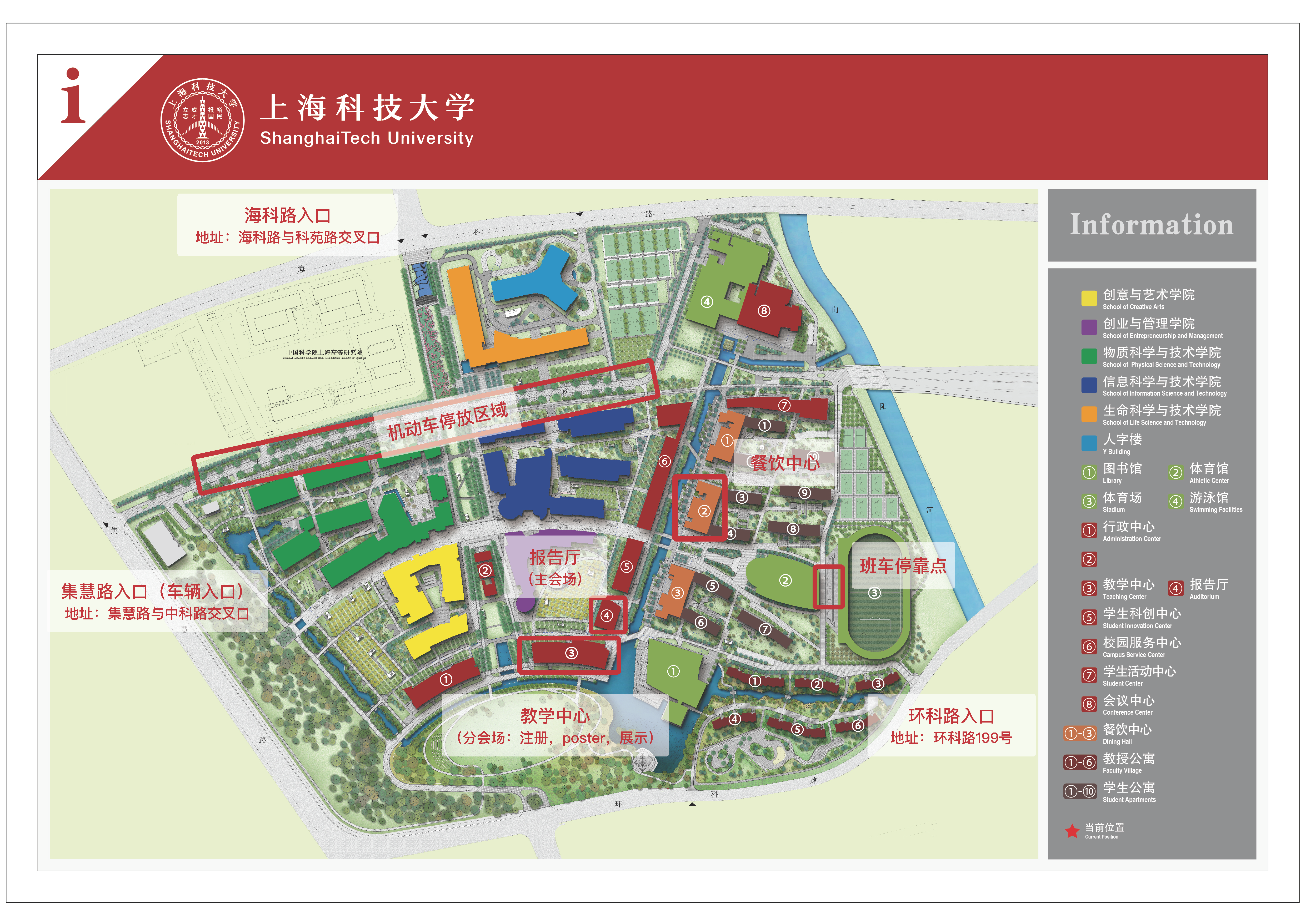 After your arrive at the Zhangjiang High Technology Park station, walk out from the No. 2 exit turn right (Keyuan Road) and then walk straight for 3 minutes to find the shuttle Bus to ShanghaiTech University (with ShanghaiTech University /SSIST).